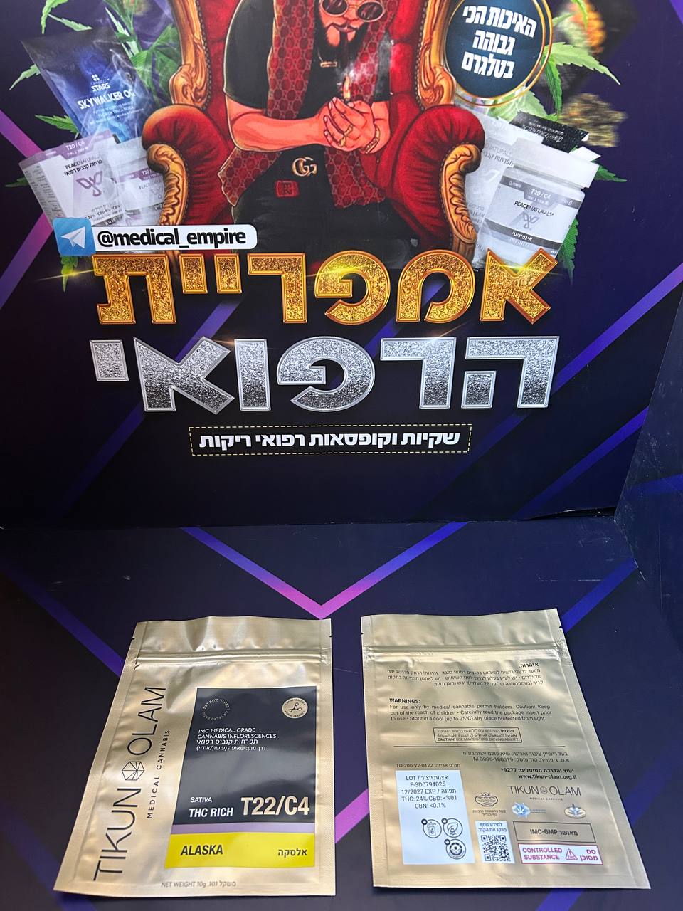 אלסקה (Alaska) – תפרחת קנאביס, מאפיון סאטיבה, מקטגוריית מינון T22/C4. אלסקה משווק על ידי תיקון עולם ללא מיתוג באריזת שקית. הטרפנים הדומיננטיים באלסקה הם לימונן, מירצן, פיינן. פרופיל הקנבינואידים כולל ריכוז THC של 24.2% – 19.9% ו-CBD של 4% – 0%.