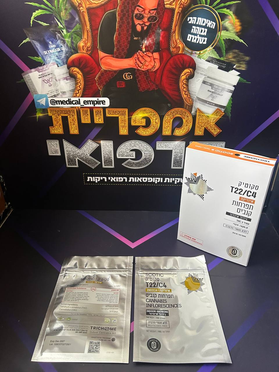 סקוטיק (Scotic) – תפרחת קנאביס, מאפיון אינדיקה, מקטגוריית מינון T22/C4. סקוטיק מגודל על ידי טריכום במתקן אינדור (נורות) בישראל, ומשווק גם כן על ידי החברה תחת המותג טריכום באריזת שקית. הטרפנים הדומיננטיים בסקוטיק הם לימונן, לינאלול, קריופילן. סיפורו הגנטי של סקוטיק מתחיל בזן המקור צ'רי ביסקוטי, אשר נוצר מהכלאת הזנים צ'רי איי.קיי.47 (Cherry AK47) עם ביסקוטי. פרופיל הקנבינואידים כולל ריכוז THC של 24.2% – 19.9% ו-CBD של 4% – 0%.