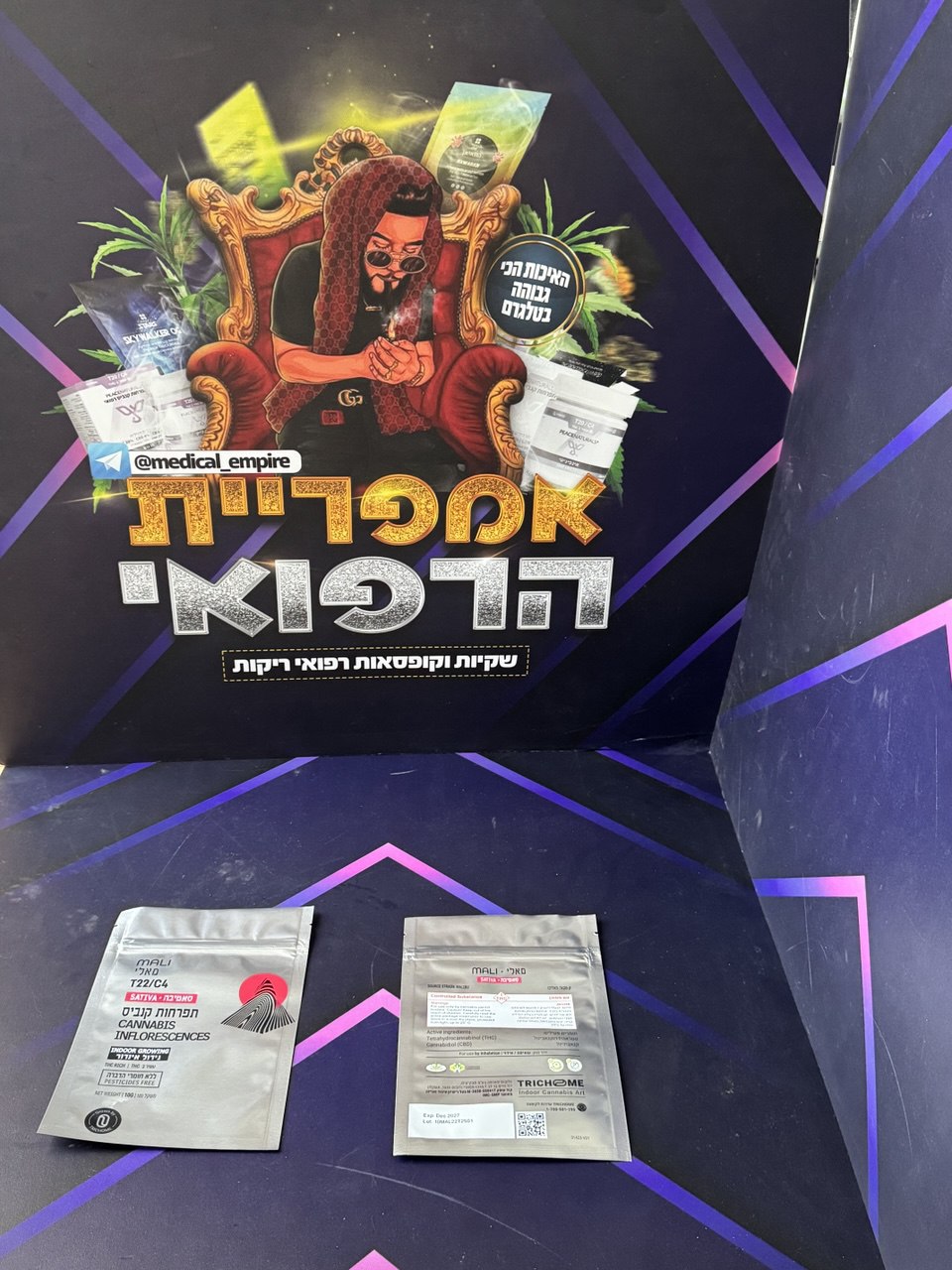 מאלי (Mali) – תפרחת קנאביס, מאפיון סאטיבה, מקטגוריית מינון T22/C4. מאלי (Mali) מגודל על ידי טריכום במתקן אינדור (נורות) בישראל, ומשווק גם כן על ידי החברה תחת המותג טריכום באריזת שקית. הטרפנים הדומיננטיים במאלי (Mali) הם אוסימן, טרפינולן, יומולן, מירצן, קריופילן. סיפורו הגנטי של מאלי (Mali) מתחיל בזן המקור מאליבו, אשר נוצר מהכלאת הזנים אמנזיה עם דה דארק סייד. פרופיל הקנבינואידים כולל ריכוז THC של 24.2% – 19.9% ו-CBD של 4% – 0%.