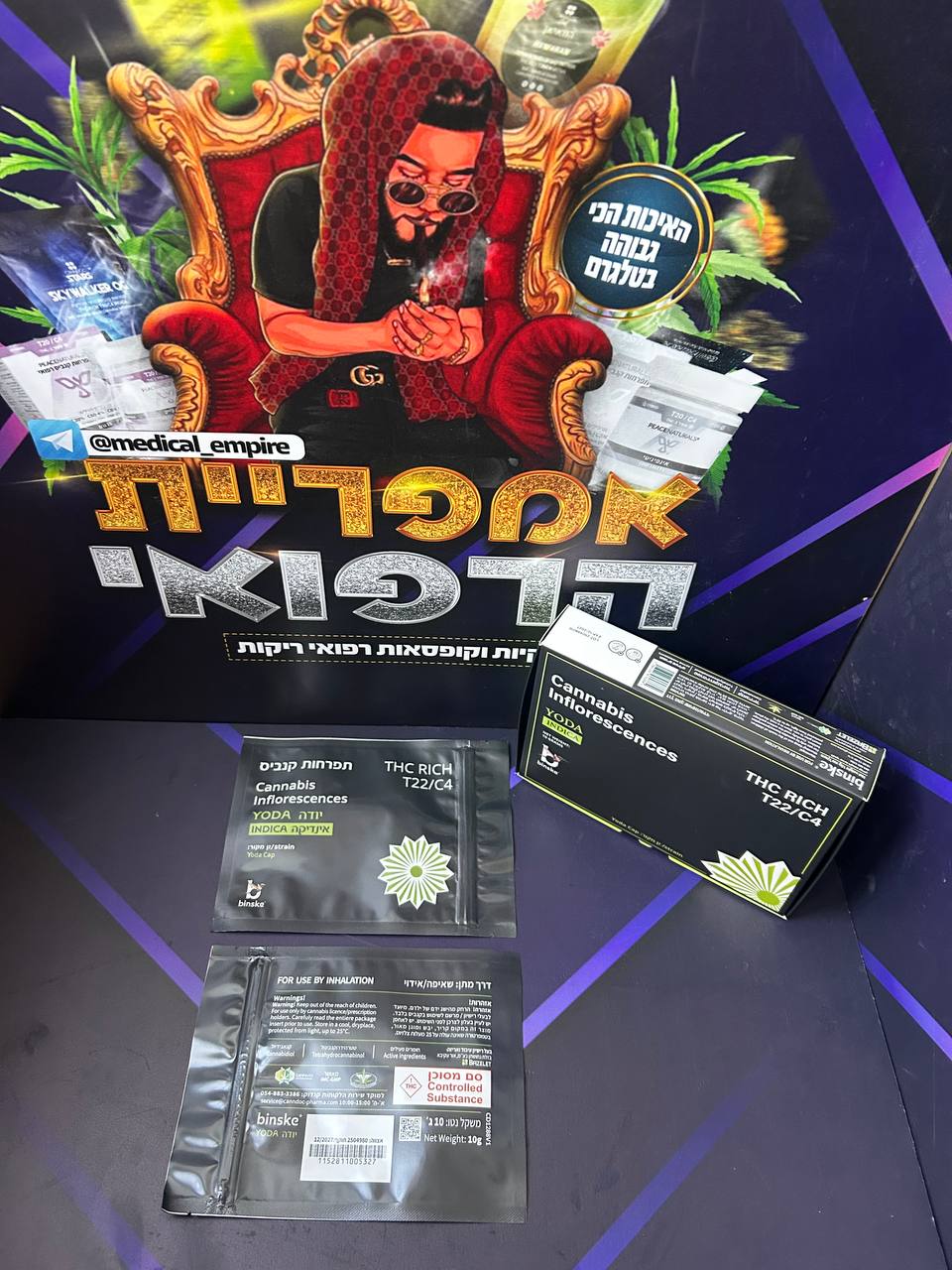 יודה (Yoda), תפרחת קנאביס, משתייך לקטגוריית אינדיקה במינון T22/C4. המוצר משווק ומפורסם על ידי חברת קנדוק תחת המותג בינסק באריזת שקית. הרקע הגנטי מתחיל בזן המקור יודה קאפ (הכלאה בין הזנים בייבי יודה ו-קאפ ג'אנקי). הטרפנים המובילים בפרופיל הארומטי הם לימונן, לינאלול, פרנסן, קריופילן. פרופיל הקנבינואידים כולל THC בריכוז 19.9%-24.2% ו-CBD בריכוז 0%-4%.