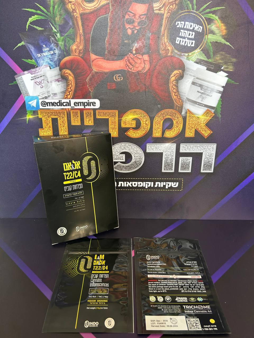 אל.דאבליו (L.W) – תפרחת קנאביס (סאטיבה) מקטגוריית המינון T22/C4. מתקן ואופן הגידול הגידול בוצע במתקן אינדור (Indoor) סגור ומבוקר, המאפשר שליטה מלאה בתנאי האקלים והתאורה לטובת הדירות גבוהה.. נתוני אצווה וריכוזים על פי דיווחי היצרן לאצווה הנוכחית, המוצר מכיל THC בטווח 19.9%-24.2% ו-CBD בטווח 0%-4%. בשל ריכוז ה-THC הדומיננטי, מוצר זה מסווג כבעל השפעה פסיכואקטיבית ניכרת.